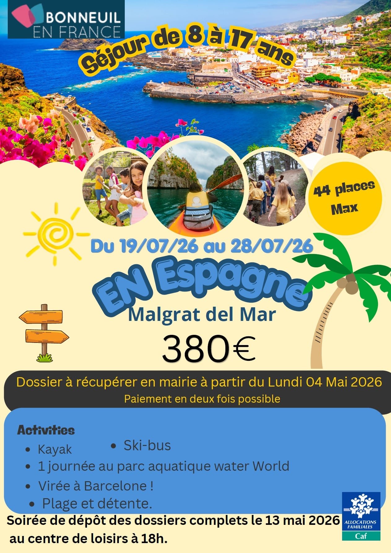 Séjours en Espagne à Malgrat del Mar du 19/07/26 au 28/07/26 pour les Bonneilleux de 8 à 17 ans